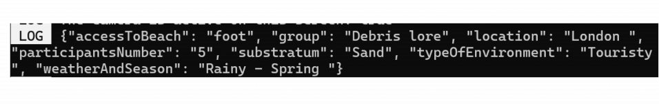 The live screen presents the user with a form. This form is intended to collect important information to provide context about the place the user is in, the group they are working with, and general vital beach conditions. This data is collected before the ‘Live survey starts’, and it needs to be linked to the information that will be collected during the survey (i.e the found debris).